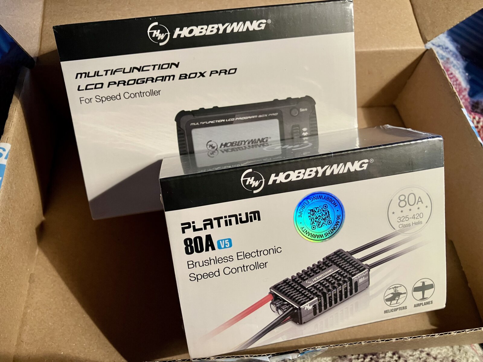 die sendung kommt diesmal von voltmaster aus memmingen, die hatten die mittlere „flyfun“ serie nur in hochvolt im programm. leider hat jede serie eine eigene programmierbox, aber wenn ich gute erfahrungen mit den reglern mache folgen vielleicht noch weitere.