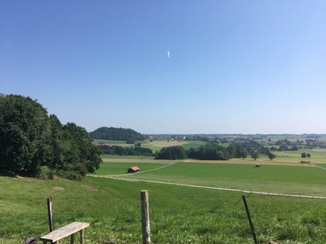 hier war ich am dienstag mit dem shorty (für weitere einstellflüge) und dem shadow am platz in inning, trotz gelegentlich auffrischenden windes hat sich der shadow grossartig geschlagen. ich musste allerdings etwas höher in die thermik einsteigen, unter hundert meter waren bestenfalls nullschieber zu erreichen.