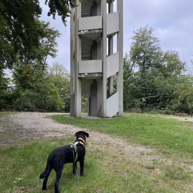 Gestern bin ich mit Sams auf den Himmelberg gewandert. Vlt. erinnerst Du Dich noch an den Turm oben auf dem Berg, war gelegentlich Ziel unserer schulischen Wandertage.