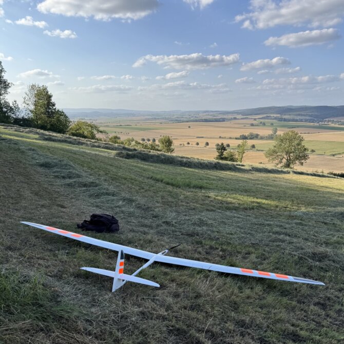 bin mit dem mini vision bei schönstem 3 bft ost allein am hang in rott, bei zu beginn durchaus herausfordernden bedingungen mit knapp ausreichendem dynamischen steigen und zerrissener lokaler thermik! der kleine macht sehr viel spass, der mix aus F3J und F3F passt perfekt zum tag heute und dem engräumigen fliegen an dem kleinen hang 🦅
