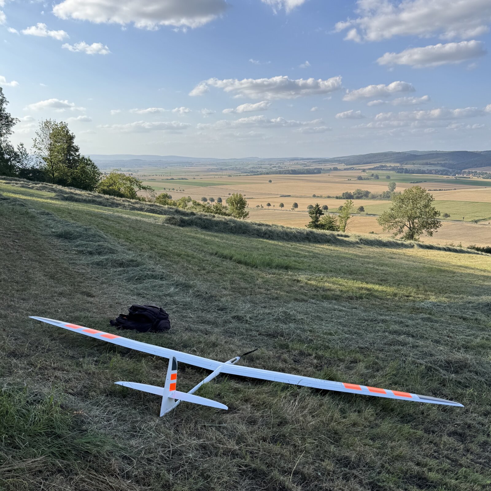 die thermik über der vorgelagerten ebene ist für mich nicht zu erreichen, dafür ist die sicht nach den heissen tagen zu schlecht und das modell zu „mini“ …