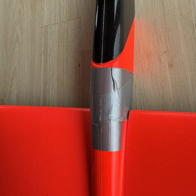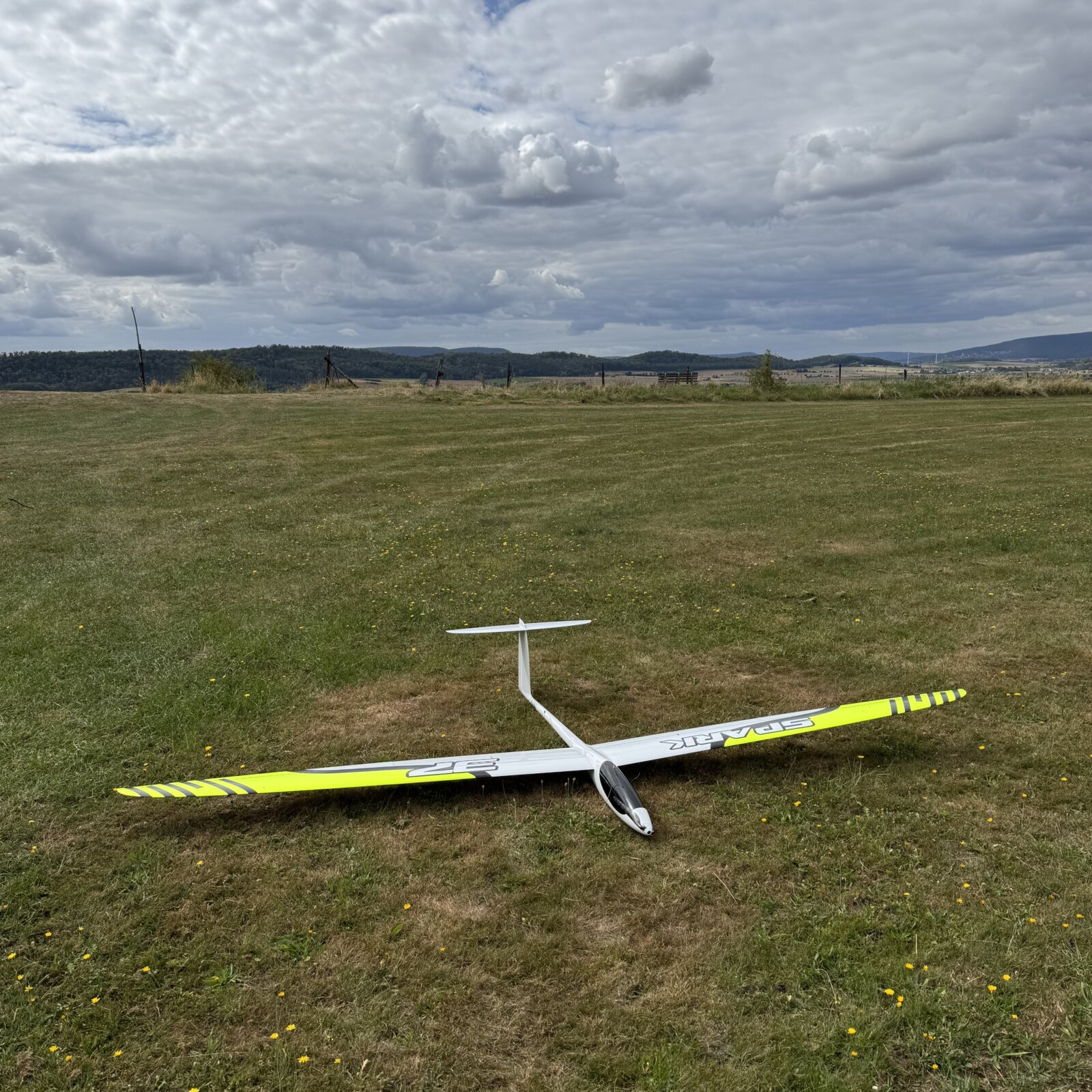 Um den Frust über meine Fehler zu überwinden, habe ich den Rumpf mit Panzerband getaped und konnte gestern Abend bei schwächerem Wind (immer noch rd. 5 bft) und besser Anströmung herrlich fliegen! Habe schon einen neuen Rumpf bestellt, aber hier geht es jetzt erstmal so mit Panzerband.