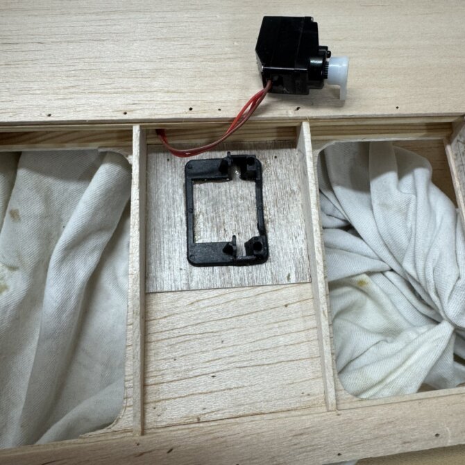 dieses teil koppelt den motorträger an das sperrholzbrett und muss an beide teile angepasst werden. lässt sich an der schleifscheibe gut machen, ohne wäre es richtig arbeit.