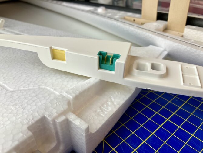 p.s. da der raum zwischen den flächenwurzeln recht schmal ist, können die stecker nicht gegenüber liegen. eine seite kommt nach vorn und die andere nach hinten.